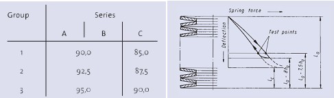 載荷測(cè)試時(shí),彈簧組須至少壓縮至Lo=0.8?ho。 lo=0.75?ho時(shí)的卸載載荷須在表所規(guī)定的范圍內(nèi)。